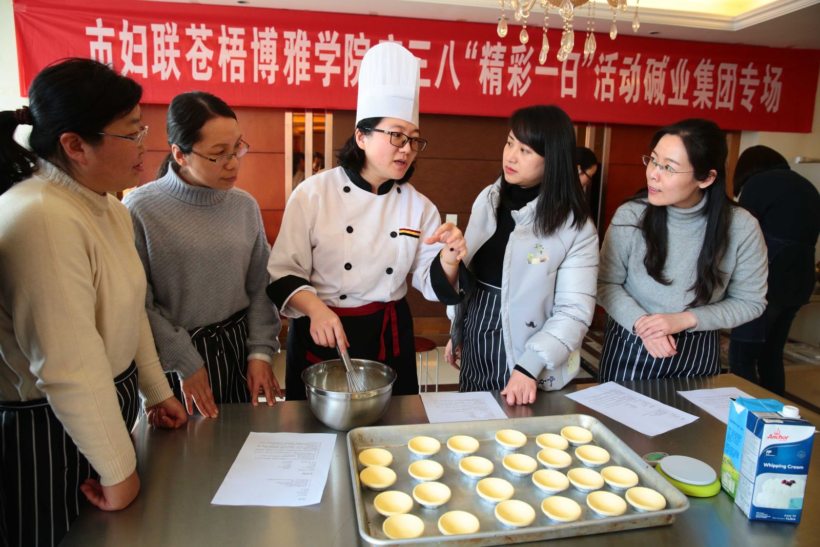烘焙培訓(xùn)中,只見(jiàn)大家稱量、打蛋、調(diào)黃油,在老師的指導(dǎo)和幫助下,紛紛化身“小廚娘”,投身“甜蜜事業(yè)”。當(dāng)打開(kāi)烤箱的那一刻,香味四溢,現(xiàn)場(chǎng)彌漫著快樂(lè)和幸福的味道。