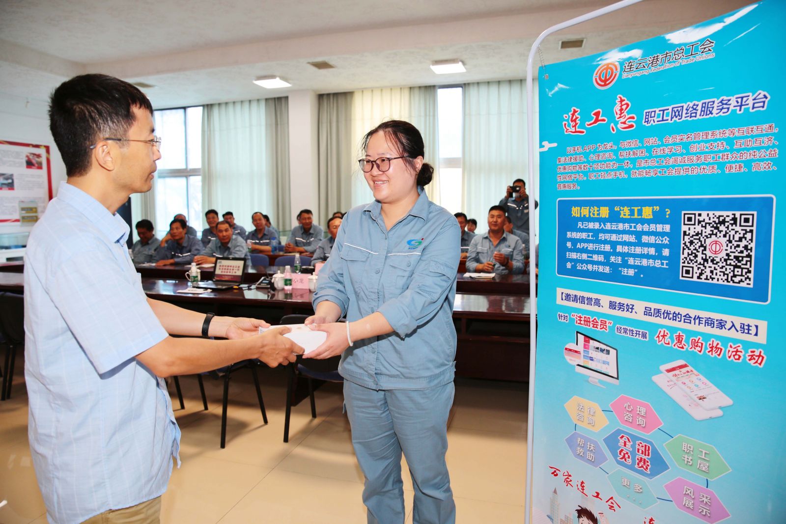 此次調(diào)研,孫月春副主席一行帶來三百余冊(cè)圖書贈(zèng)予公司職工書屋,進(jìn)一步豐富了公司職工的業(yè)余文化生活,并向參加連工惠抽獎(jiǎng)活動(dòng)獲獎(jiǎng)的我公司職工伏廣偉頒獎(jiǎng)。連工惠運(yùn)營(yíng)人員針對(duì)“連工惠”平臺(tái)注冊(cè)相關(guān)事宜進(jìn)行了面對(duì)面指導(dǎo),并一一解答了現(xiàn)場(chǎng)參會(huì)人員提出的問題。