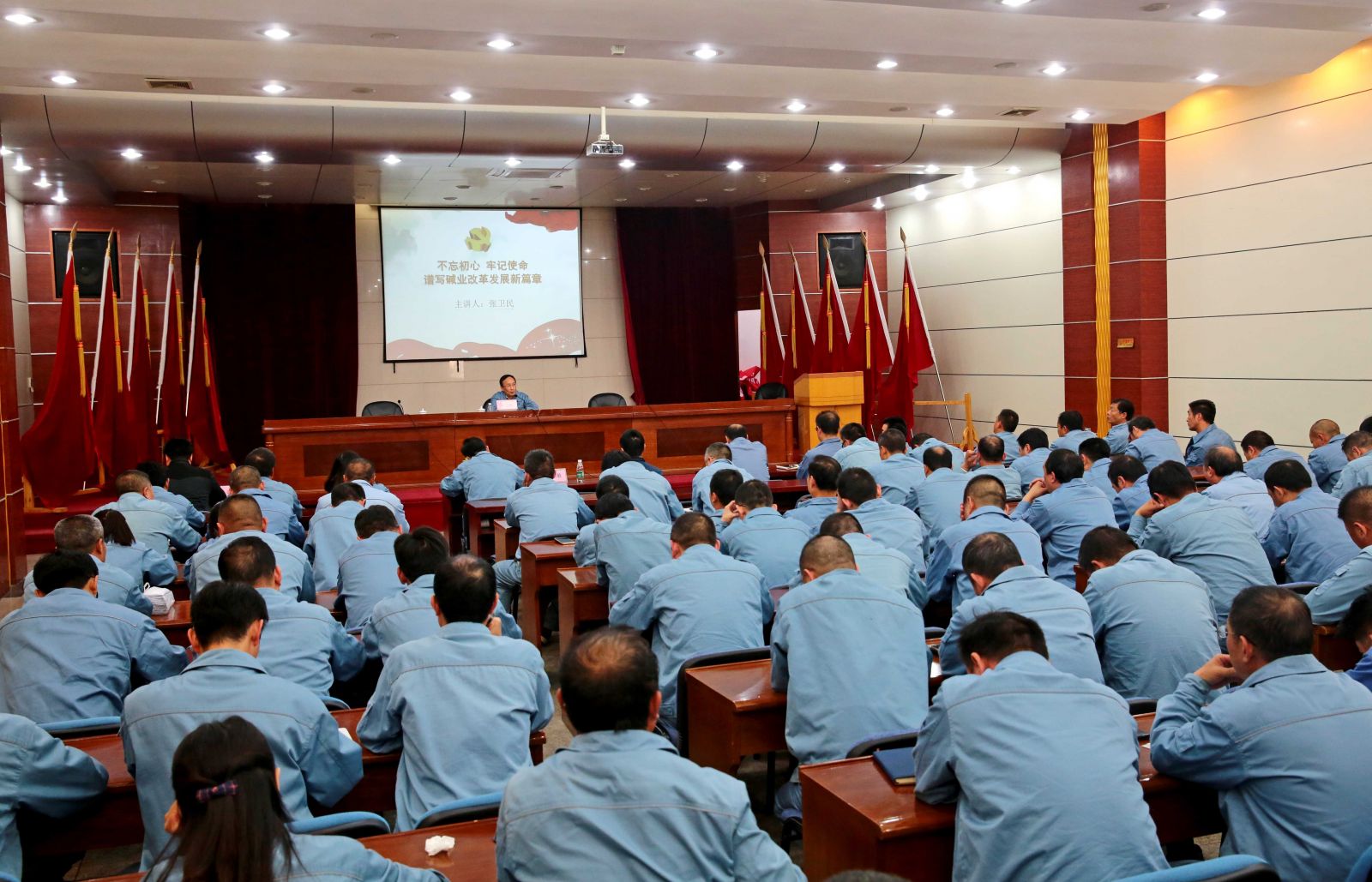 專題黨課上,公司黨委書記、董事長張衛(wèi)民以“不忘初心、牢記使命,譜寫堿業(yè)改革發(fā)展新篇章”為主題,從“守初心、擔使命,要深刻學習領會習近平新時代中國特色社會主義思想內(nèi)涵”、“守初心 擔使命 要充分認識到公司與習近平總書記對國資國企工作要求的差距”、“守初心、擔使命,要善于運用新思想指導實踐推動工作”、“守初心、擔使命,需要全體黨員干部敢于斗爭敢于擔責”等四個方面,結(jié)合工作經(jīng)歷、學習體會、調(diào)研情況,為參會人員上了一堂精彩、生動、嚴肅的專題黨課和形勢任務教育課。他要求全體黨員干部要用習近平新時代中國特色社會主義武裝頭腦,在本職崗位上勇于擔當、履職盡責,面對困難迎難而上,面對矛盾敢于碰硬,面對不良現(xiàn)象敢于亮劍,切實擔負起推進公司做大做強做優(yōu)的職責任命,共同譜寫公司高質(zhì)發(fā)展的新篇章。