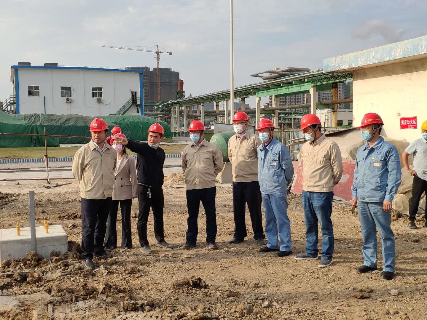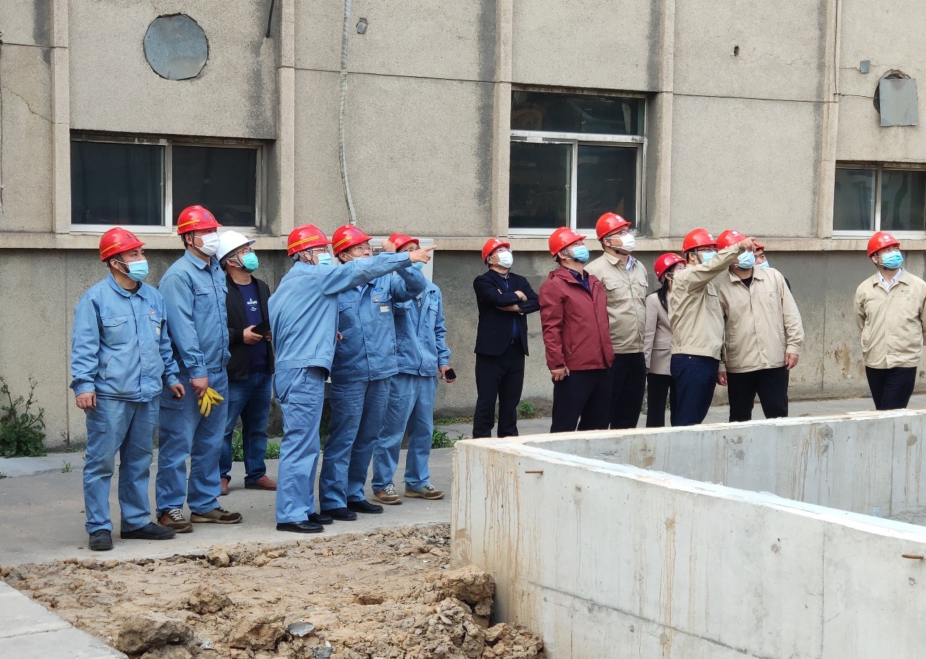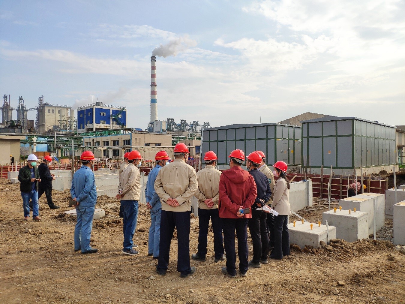 程真何一行人員在堿業(yè)公司董事長張衛(wèi)民的帶領(lǐng)下實(shí)地考察了外電網(wǎng)系統(tǒng)供電增容改造施工狀況,并就施工質(zhì)量和進(jìn)度提出了意見和建議。