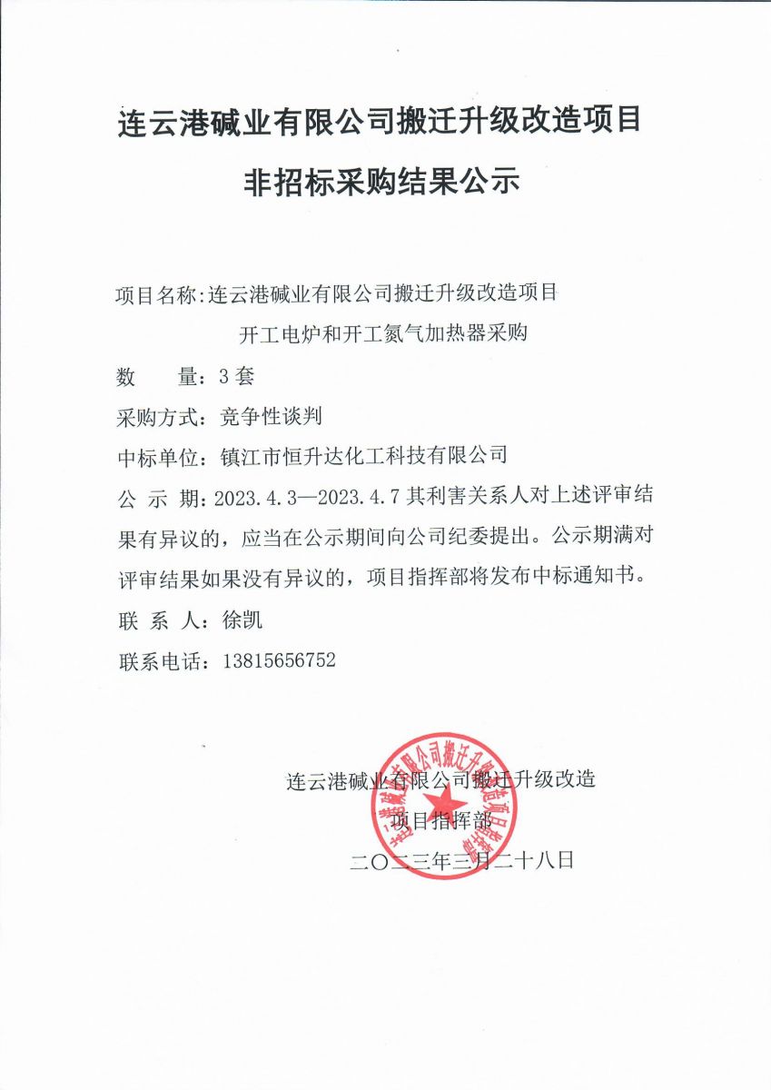 開(kāi)工電爐和開(kāi)工氮?dú)饧訜崞鞣钦袠?biāo)采購(gòu)結(jié)果公示