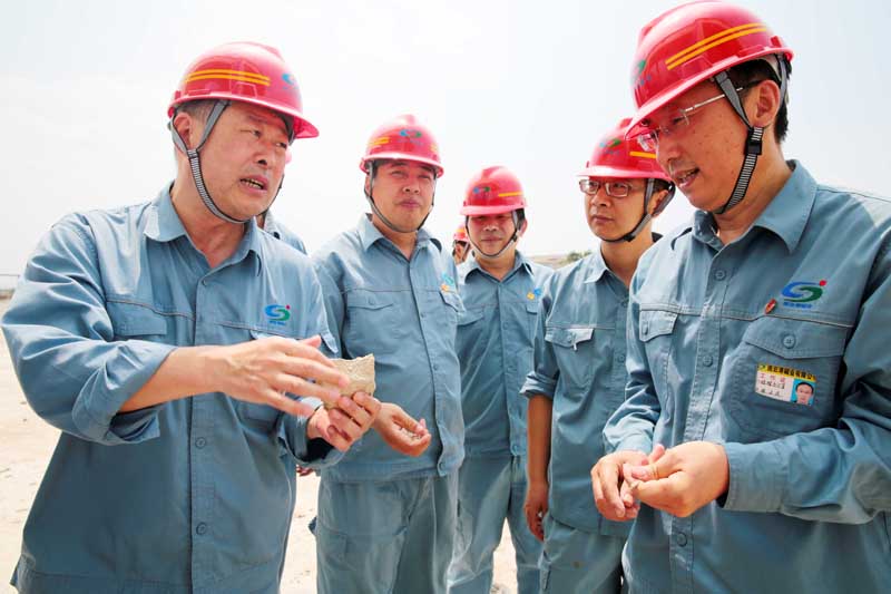 5月16日上午,公司黨委書記、董事長張衛(wèi)民,黨委副書記、總經(jīng)理李清菊,黨委委員、副總經(jīng)理黃建華,黨委委員、副總經(jīng)理焦旺盛等一行到渣處理車間指導工作。