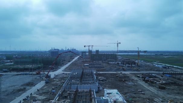 ⑵聯(lián)堿二標(biāo)段611鹽硝車間破樁完成;523結(jié)晶工段框架6~10軸一層梁驗收完成;614真空制鹽循環(huán)水站外排水池土方回填;562聯(lián)堿循環(huán)水站框架西側(cè)池壁驗收完成,水池破樁;524干銨工段7~12軸一層模板支撐架搭設(shè);503變電所3外架搭設(shè),內(nèi)架開始搭設(shè);525包裝及儲運8-16軸梁板模板鋪設(shè)、1-7軸內(nèi)架搭設(shè);506機柜間1一層梁板柱梯澆筑;601變電所2外架搭設(shè)。
