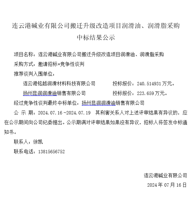 潤滑油、潤滑脂采購中標結(jié)果公示